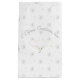 Design features an image of a descending dove holding an olive branch as full image on both sides. Your text is displayed as an arch at top in silver-coloured lettering. Background is white with the image of sparkling silver stars all around.