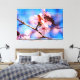 Beautiful sakura flowers, Japanese cherry blossoms. Closeup view. Pink and dark blue background. The joy of spring. Extra-large stylized digital painting from a photograph. Wrapped or stretched canvas art to decorate your place. Floral prints, and gifts for anyone. You can transfer this design to a variety of other products of your choice, large or small, including affordable low-price prints, and gifts. Please, use the "Edit Design" button to adjust the picture to the shape of the particular product. It will transfer you to the Designer Tool. Use the "Fit/Fill" option (right-side menu of the Designer Tool). You can scale, rotate, flip the image on the product template and even add some text to it. Just be creative, have fun, buy one, and be happy!