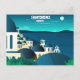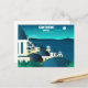 Beautiful Santorini Greece at night artwork showing the unique architecture and costal view of the greek island. Great colourful souvenir and gift idea.