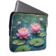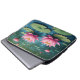 A laptop sleeve creatively designed with the nature of lotus flowers in the middle of a pond.
