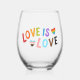 Beautiful Simple Minimal Love Is Love Pride Stemless Wine Glass