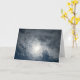A standard 5"x7", Horizontal folded greeting card, with a Beautiful Picture, of the Sun, Surrounded by White Clouds, and Blue Sky, = (Beautiful Sky Picture by P.J.M.)