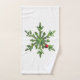Christmas towel set with a collage depicting a beautiful snowflake made of pine branches. A red Christmas ball is hanging on one of the pine branches.