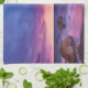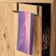 A kitchen towel with a lovely photograph featuring striking colours of purple, blue and pink at sunset.