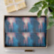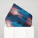 Patterned tissue paper with a gorgeous photograph. A scenic spot. A nice calm lake with a wooden dock stretching outwards. Setting sun provides beautiful colours in the sky, vibrant red and blue.