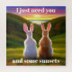 Illustration of two rabbits watching a beautiful sunset together.