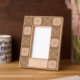 This beautiful frame is engraved with ceramic tiles like patterns on a dark background. A very elegant combination of dark and light tiles, and on the bottom, a frame where you have three lines to write your very own message.