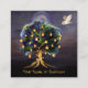 This beautiful business card design features a magical tree illuminated with glowing string lights and lanterns in front of a glowing starry night sky and the moon.