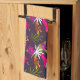 Beautiful Tropical Leaves and Hummingbirds Pattern hand towel. Lovely multi coloured tea towel printed with a pretty Hummingbird pattern, on a dark purple background.