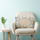 A beautiful custom pillow with an exotic beach theme. A pretty sand texture background pattern in neutral cream tones and shades of ocean blue. On top are a variety of pebbles, shells, sea urchins, starfish and pearls.