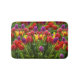 This beautiful bath mat features a high-definition image of tulips in various bright shades of red, purple and yellow.