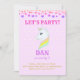 Beautiful Unicorn Birthday Invitation. Lovely multi colour polka dot header, unicorn with three colour rainbow and star pattern on violet background. The back side has multi colour polka dots and the number 3 that can also be personalized on violet background. All texts and numbers can be personalized.