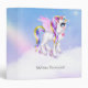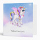 A binder with an image of a unicorn with big blue eyes, pink wings and a rainbow mane and tail. Kawaii cute.