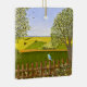 An ornament with a beautiful image of a nature scene: A bird sitting on a weathered fence, wildflowers growing around the fence, a farmer on a tractor, working his land, trees with leaves, and farmland with various colours. The image and text can be customized. You also have the option to delete the text. Original artwork by W.B.
