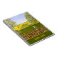 A notebook with a beautiful nature scene: A bird sitting on a weathered fence, wildflowers growing around the fence, a farmer on a tractor, working his land, trees with leaves, and farmland with various colours. The background, image and text can be personalized. Original artwork by W.B.