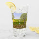 A glass with a beautiful image of a nature scene: A bird sitting on a weathered fence, wildflowers growing around the fence, a farmer on a tractor, working his land, trees with leaves, and farmland with various colours. The background, image and text can be personalized. Original artwork by W.B.