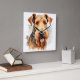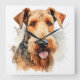 BEAUTIFUL WATERCOLOR BROWN AIREDALE TERRIER DOG SQUARE WALL CLOCK