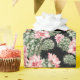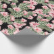 Beautiful Watercolor Cactus Pattern Pink Green Wrapping Paper - Featuring floral cactus pattern with pink flowers on black background