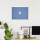 This beautiful print features a beautiful photograph of a crescent moon taken in daylight. The beautiful blue sky fades into the background while the stunning white moon captures the attention as it waxes towards a quarter moon phase.