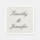 This beautiful wedding damask napkins features a silver and white pattern. With the couple's name written in grey cursive font, personalize yours today!