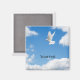 Beautiful white dove flying high in the blue sky filled with white clouds TEMPLATE. Ready to personalize. Add your own text.