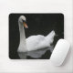 This mousepad features a photograph of a beautiful white swan. The swan is a male mute swan, you can tell it is male by the black bump on the beak. The swan is gliding gracefully across the water on a calm lake.