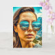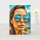 Beautiful Woman in Sunglasses Mountain Reflectoin Card