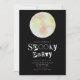 This invitation transports you to a realm where the moon reigns supreme. Against the dramatic black backdrop and alternating lines of stark white and light purple text, the words "spooky party" are presented in a horror movie cut-from-magazines letter font, adding an element of surprise and a touch of mystical spookiness to the overall design.
