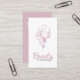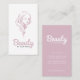 Beautiful girl illustration on the front with customizable text on each side. Good for beauty business branding.