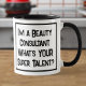 Funny slogan on a mug that says "I'm a Beauty Consultant. What's YOUR super talent?". Two Tone Mug for a Beauty Consultant. Black and white bold text.