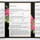 A beautiful and chic design motif featuring a colourful bouquet of flowers peaks out from behind the word "Lashes". Framed in a faux metallic gold foil box and personalized with your name underneath, this is the perfect eyelash extension salon 5x7 tri-fold brochure. Created for eyelash extensions salons, makeup artists, beauty specialists and more - these smaller sized brochures are perfect to display your price lists and menu of services. A great marketing piece to hand out to potential clients to quickly introduce your business. Please contact the designer for help with special typesetting or layout variations. Art and design © 1201AM Design Studio | www.1201am.com
