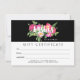 Coordinates with the Beauty Florals Lash Extensions Black Business Card Template by 1201AM. A beautiful and chic design motif featuring a colourful bouquet of flowers peaks out from behind the word "Lashes". Personalized with your name underneath for an instant logo on these personalized gift certificates for eyelash extensions salons. © 1201AM CREATIVE