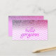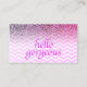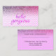 Eye catching, pink glitter look and chevrons beauty salon appointment cards. Suitable for many beauty-related businesses such as hairstylists, makeup artists, cosmetologists, fashion stylists, manicurists, beauty consultants, etc. Front reads 'Hello Gorgeous' in faux purple glitter letters on a lavender purple pink chevrons pattern background overlaid with purple and pink ombre glitter. Back provides appointment date and time and business contact details in matching, pink lavender ombre glitter accent with solid lavender pink background colour. Background colour may be changed on back, as well as text colours and/or styles on the back. Fill in the template with your own beauty business information. Other customizable boutique appointment cards are available in our Zazzle.com/angela65 shop.