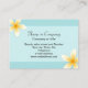 Health and beauty saloon or spa business card featuring a beautiful woman with a towel wrapped around her head and eyes closed as if she is relaxing. Around her are Frangipani (Plumeria). Aqua blue background. Also available in other colours. The flowers on the back can be removed (and moved) to fit more text.