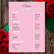 Flat Menu Card, Size: 10.2 cm x 22.9 cm, Paper: Basic Semi-Gloss