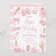 Pretty in Pink Spa Day party Birthday Invitation, features beauty spa elements. Cute bathrobe, pink bows, nail polishes, brushes, pink towels, candles, and slippers. All the text is editable. Great for a sleepover, slumber party, or pajama party.