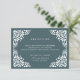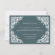 Designed to coordinate with our Beaux Arts wedding collection, this elegant reception card features a papel picado style white border framing your wedding reception details, timing and address on a dark spruce green background.
