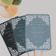 Our art deco style wedding program fan features your ceremony details in elegant white lettering, framed by lacy white cutout style details at the corners on a rich forest green background. Reverse side lists the members of your wedding party with easily editable text fields. Coordinates with our Beaux Arts wedding invitation collection in Spruce. Use the template fields to add your ceremony and bridal party information, and then click "Customize It" to reposition elements if needed. Need help? Contact me via the "Ask this Designer" link on this page.