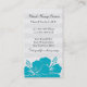 Massez les cartes de visite dans une belle conception tropicale comprenant un motif floral légèrement imprimé en arrière - plan et deux fleurs bleues colorées de ketmie. Personnalisez les modèles des textes pour une masseuse, un thérapeute de massage, ou un physiothérapeute autorisé.