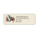 Étiquettes de adresse avec un beau dessin aquarelle. Avec une paire de chevaux, brun et blanc. Tête et cou visibles avec de la peinture goutte le long de la base de leur cou. L'ambiance du sud-ouest.