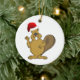 Beaver cute santa hat ceramic ornament