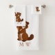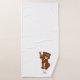 Bath towel set, consisting of a face cloth, hand towel and bath towel with a beaver design. You can customise this bath towel set with any text of your choice. Should you require any help with customising then contact us through the message link on this page. Beaver design bathroom towel set