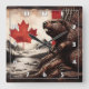 Beaver on a Tree With Canadian Flag and Mountains Square Wall Clock