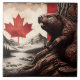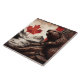 Beaver on a Tree With Canadian Flag and Mountains Tile