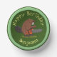 This happy beaver is ready to build his lodge with a chainsaw. Drawn in fun cartoon illustration style for a party!