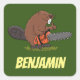 This happy beaver is ready to build his lodge with a chainsaw. Drawn in fun cartoon illustration style!