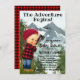 Invitations de douche bébé de bûcheron avec adorable bébé garçon portant jeans bleus et veste en plaid de buffle sur une aquarelle rustique montagne et arrière - plan d'arbre. Ces invitations pour les douches pour bébés bûcherons sont facilement customisées pour votre événement en ajoutant simplement vos détails.