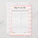 Profitez de jouer à ce Baby Product ABCs jeu de baby shower sur douce, rose et blanc rayures arrière - plan. Mignons lapin blanc, lapin lapin sur le dos avec des modèles créés pour vous.