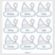 L'ensemble de 9 autocollants peut être customisé jusqu'à 9 noms différents pour le retour à l'école, bureau, garderie, événements spéciaux tels que le baby shower et plus.