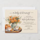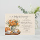Cette charmante invitation présente un plan aquarelle de tasses de café sur une table avec des fleurs de maman dans un vase et un citrouille. Les mots "un bébé est en train de brasser" sont écrits dans une police de caractères moderne. C'est la façon idéale d'invitation vos amis et votre famille pour célébrer la future maman et son amour du café.
